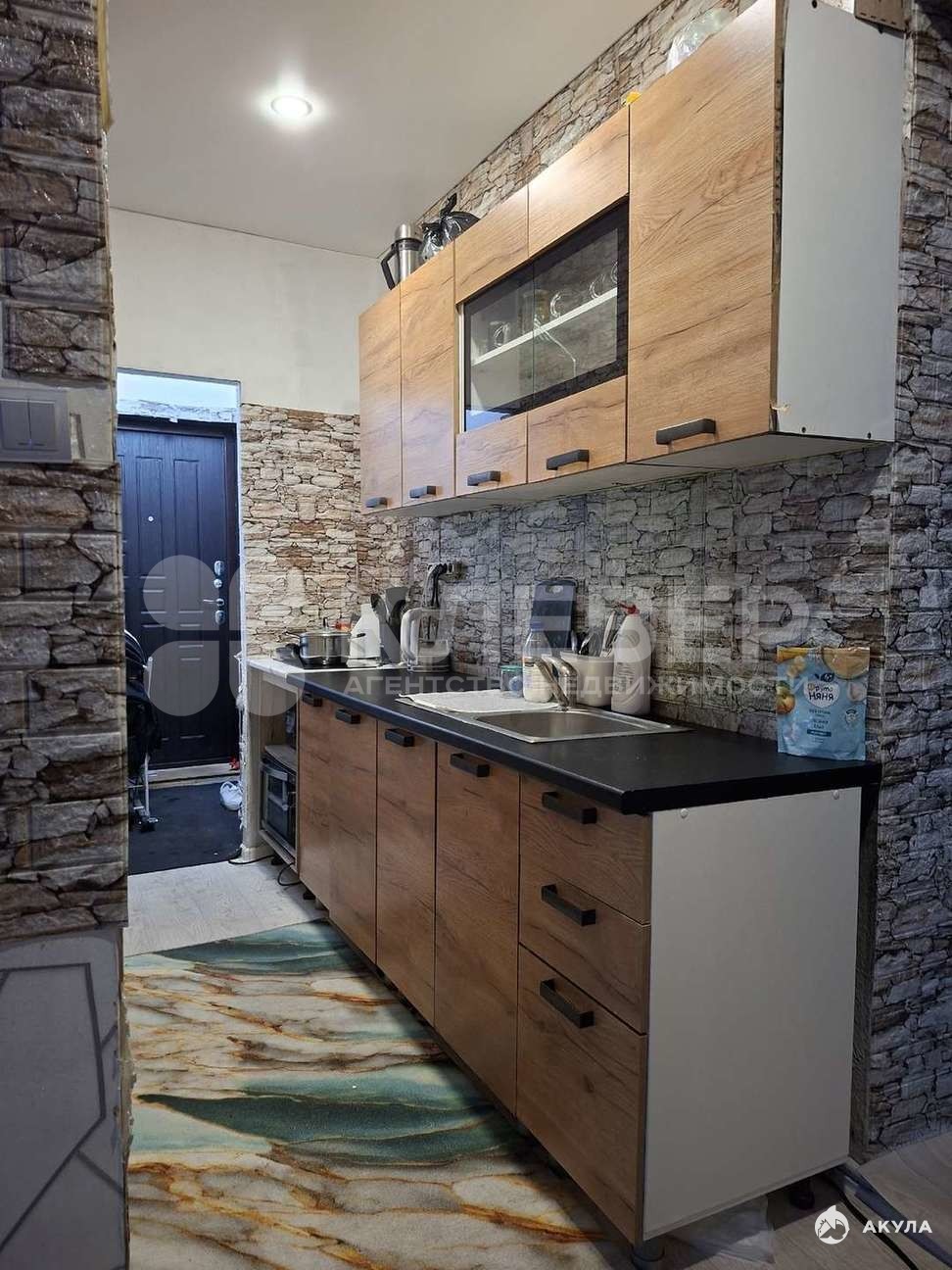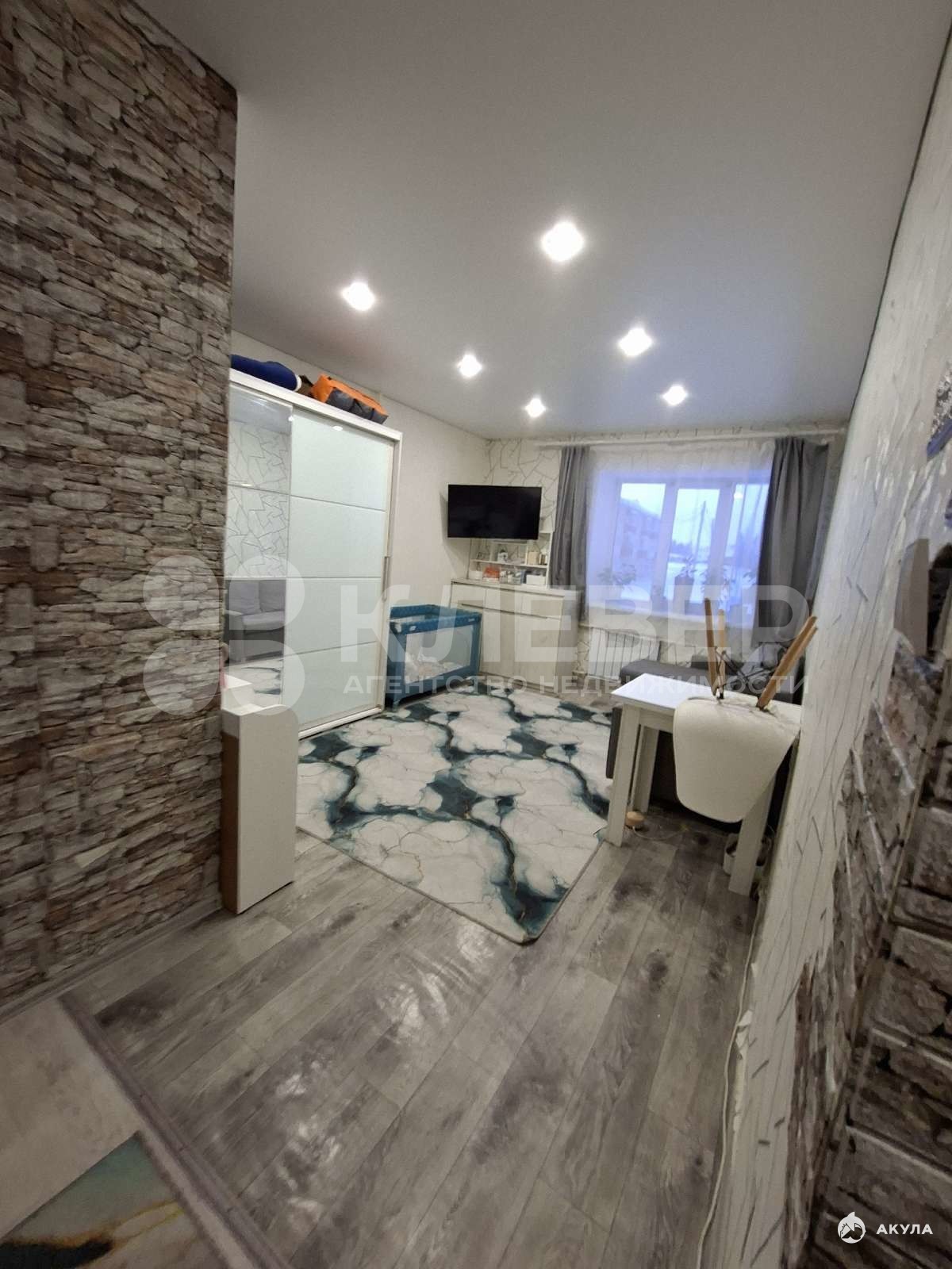 На полу постелен линолеум, натяжные потолки.