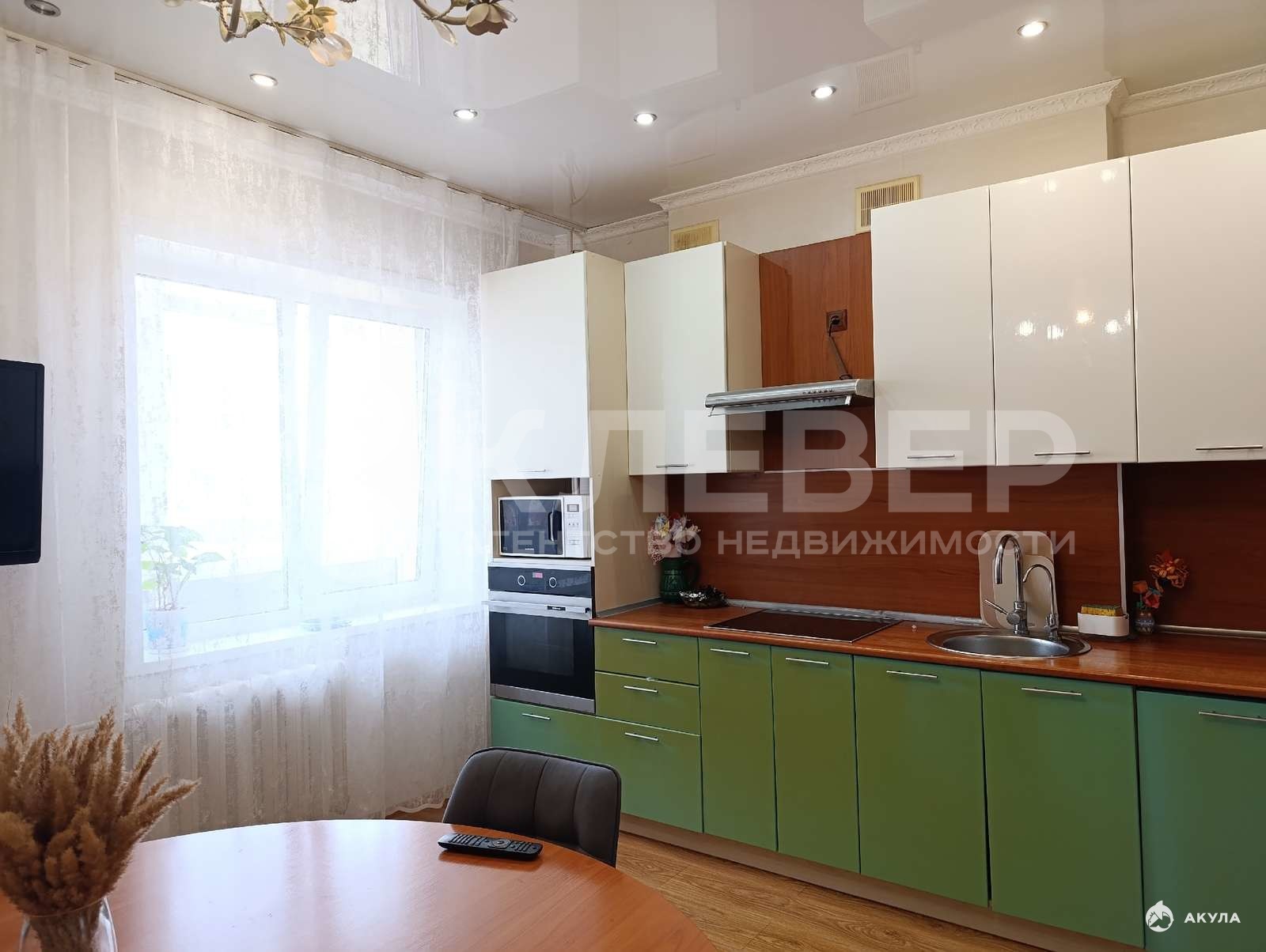 В квартире остаётся кухонный гарнитур, электрическая плита, вытяжка, духовка, Спальный гарнитур, мебель в детской, спортивный уголок.