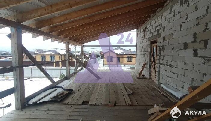 Общая площадь дома — 120 кв. м. Дом находится в стадии строительства, при этом основные коммуникации уже заведены и функционируют, поэтому проживание возможно уже сейчас. Подключено электричество, работает водоснабжение от собственной скважины, оборудована канализация — септик. Также ведется подключение к газу.
