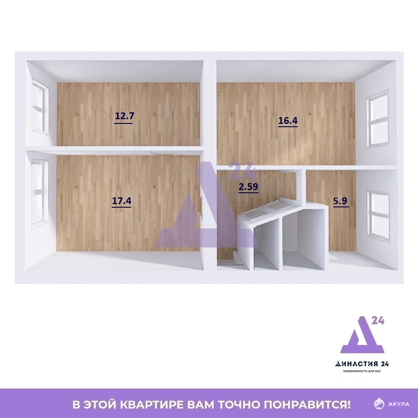 Общая площадь квартиры — 62 кв. м.