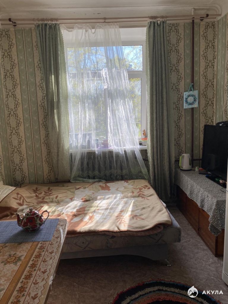 Отличная уютная комната правильной формы, высокие потолки, стеклопакет, места общего пользования в хорошем состоянии. В квартире 5 комнат, но по факту проживают в трех, все соседи положительные, в доме был сделан капремонт, территория огорожена и ухожена на три дома. У комнаты три собственника, один из них несовершеннолетний, но опеку пройдем быстро, так как условие уже подобрано.