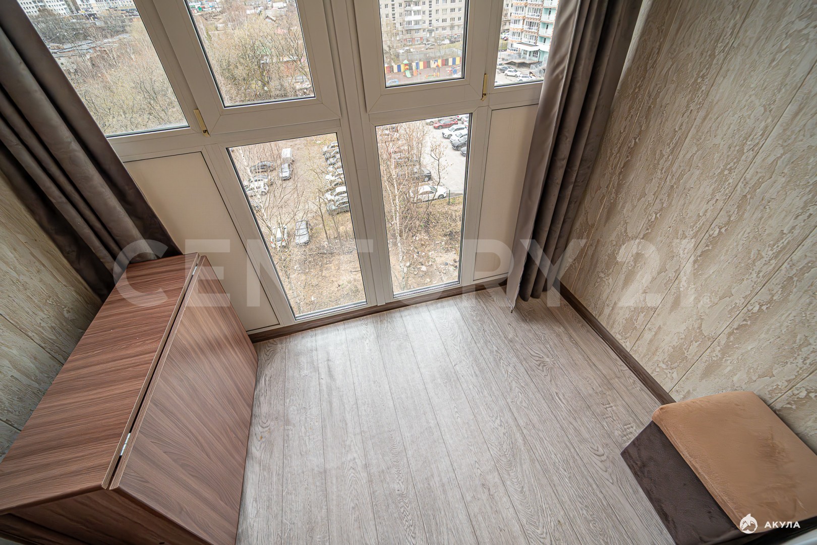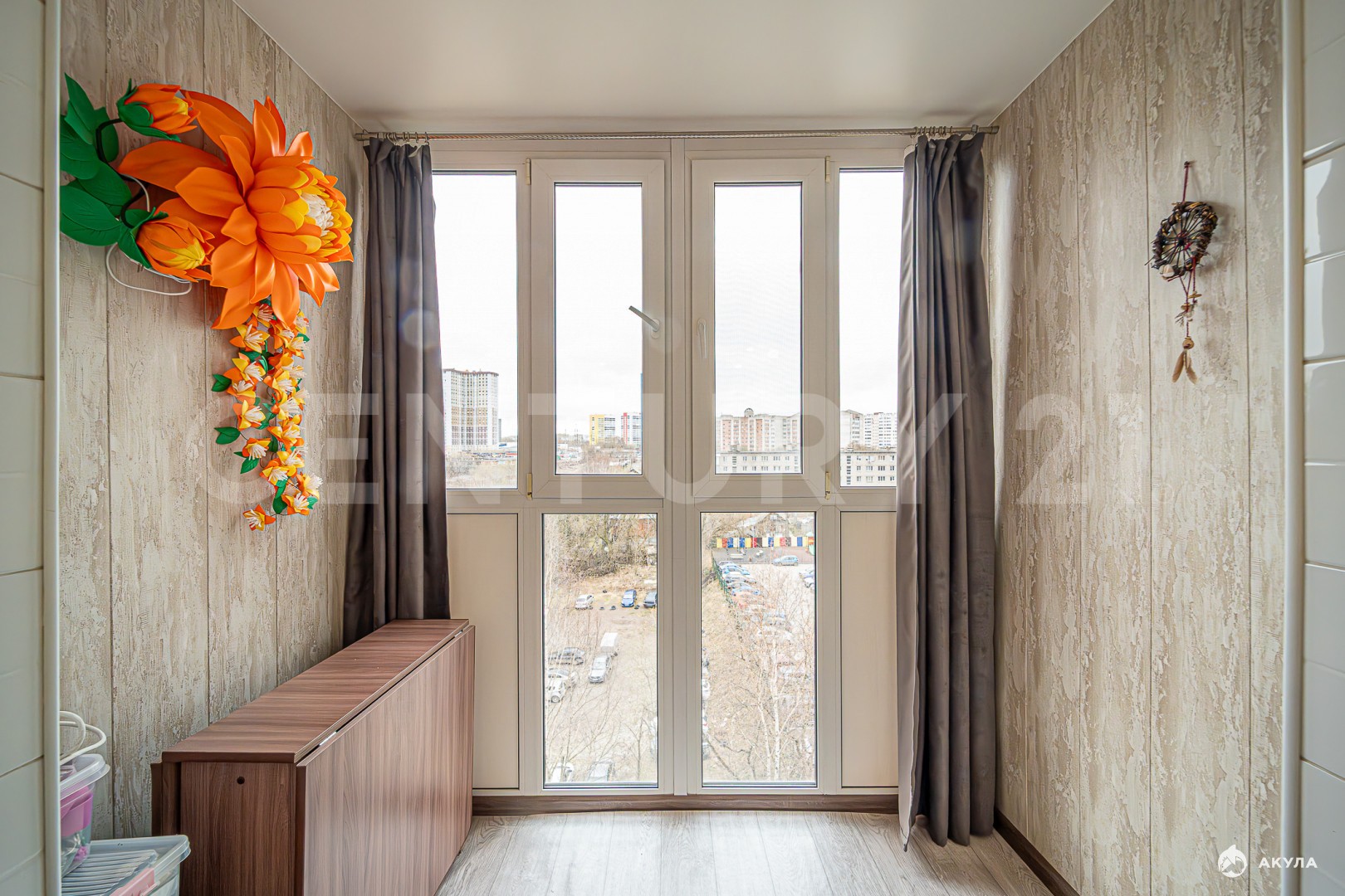 В детских комнатах уютная атмосфера благодаря жизнерадостному сочетанию цветов и фактур. Удобный балкон с дополнительными шкафчиками для хранения. Балкон застеклен и выходит окнами во двор. С балкона вид на двор, можно видеть, как гуляют дети в полной безопасности от дорог и чужих людей. И при открытых окнах не будет пыли.